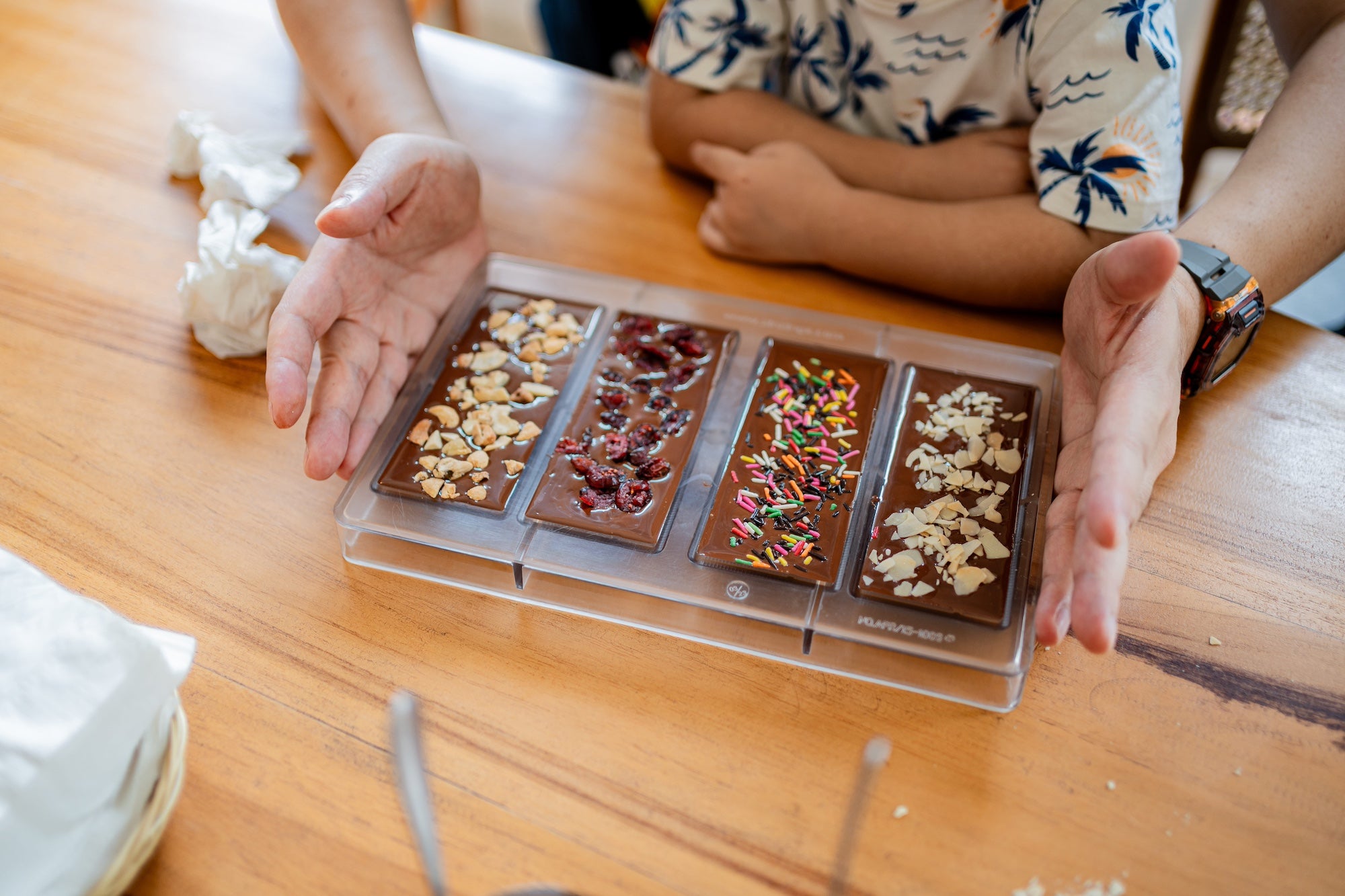 From farm-to-bar, you will get hands-on experience with our chocolate making session where you will melt, temper, and mold your very own chocolate using our top-quality ingredients.